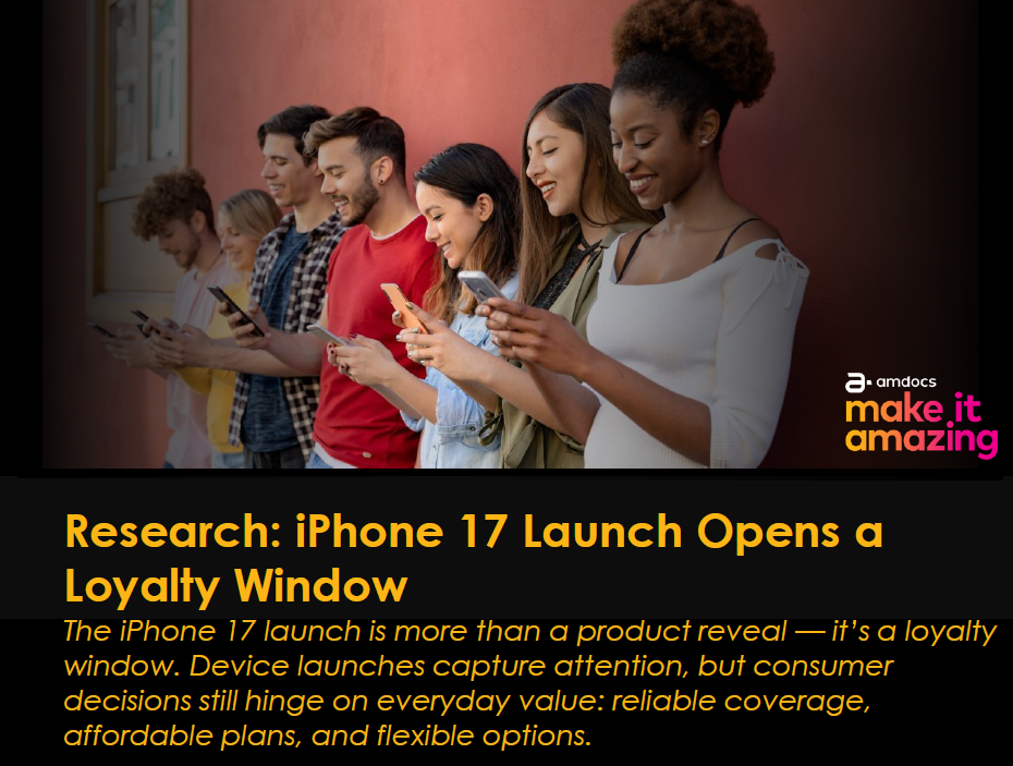 Ahead of the iPhone 17 pre-orders, Amdocs surveyed U.S. consumers on their upgrade plans, feature priorities, and expectations from carriers. The findings mark a key shift: while flagship launches grab attention, long-term value drives decisions. Consumers continue to prioritize network reliability, affordability, and innovative connectivity—giving service providers a critical opportunity to build lasting loyalty. Download this fact sheet to learn more.